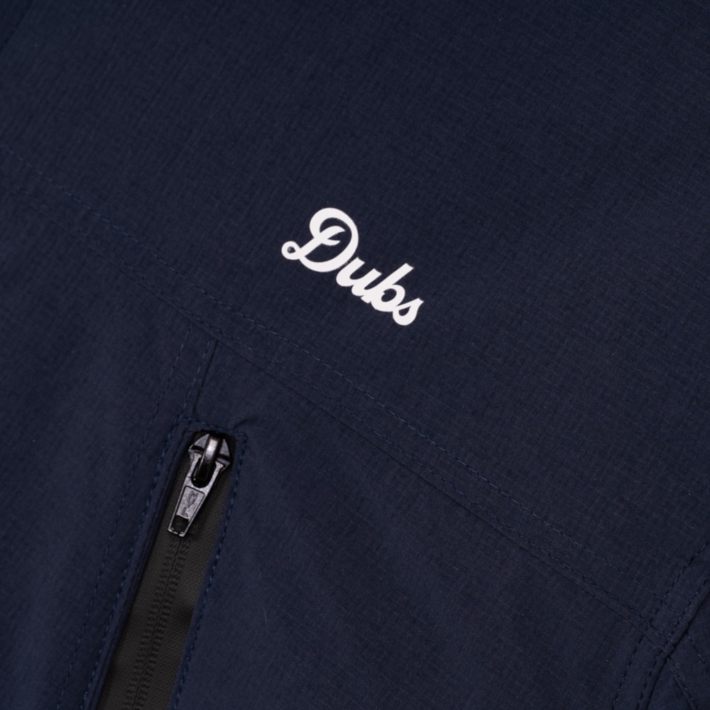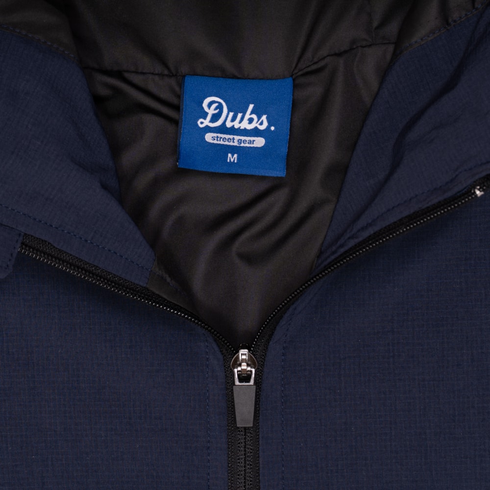 - Composição: 88% PA / 12% PUE - Termocolante Branco Dubs na frente - Bolsos com ziper dianteiro - Cor: Azul Marinho - Fabricada no Brasil - Lavar na máquina - Não passar ferro sobre etiqueta